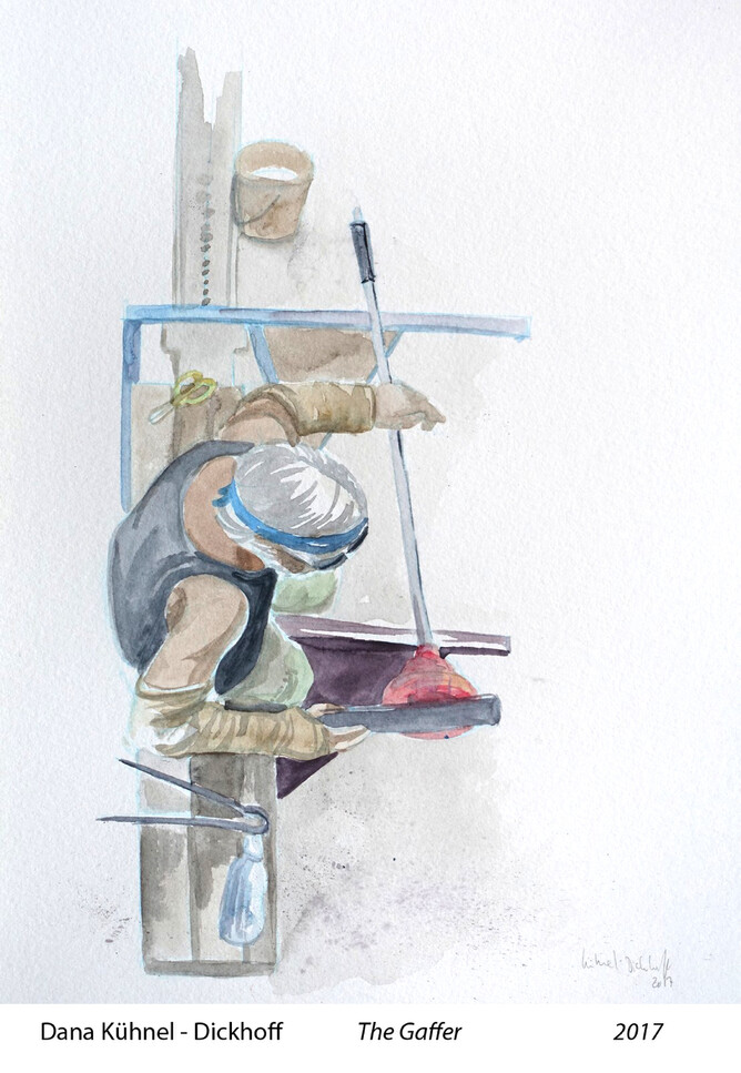 Dana visited my studio in Whangarei recently. She took a few photos and we had a chat about art and glass blowing. Yesterday she sent me an image of the watercolour she has created of me blowing glass and here it is. You can check out her work at