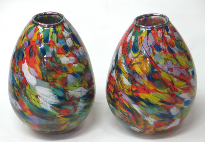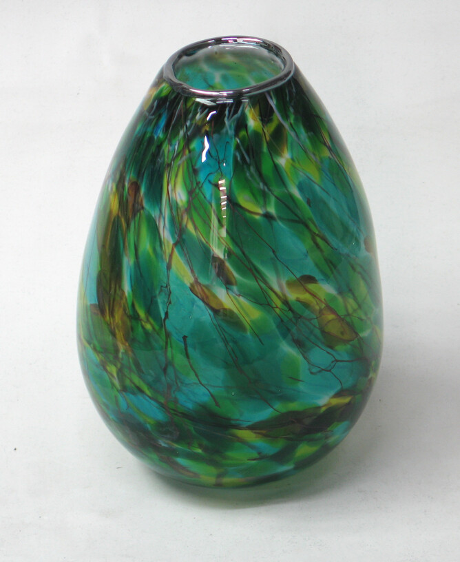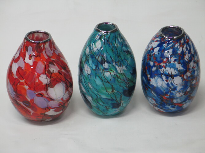 I started blowing my Tear Drop Vases as practice for my painted vases because, due to lack of practice, I keep stuffing up the painted works when I blow them. Initially I used the colour mixes I had developed for my shard vases but have now started to evolve these mixes as a new line of work. I have even come up with names for the colour mixes, such as Waterlilly and Ocean blue. They have proven very popular.