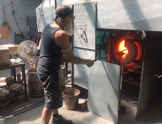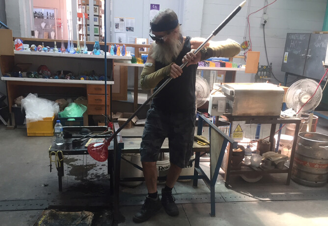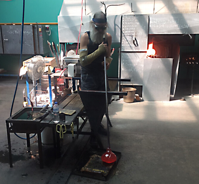 Five years ago on 16th September 2013 I moved into the glass studio created by Keith Mahy in the Town Basin Whangarei. I left the ute and trailer parked in the loading zone half the day because I was busy in the studio and got a $14.00 fine. The next day Garry Nash helped me get the furnace, glory hole and annealer sorted. By the weekend I had made my first batch of glass from the raw materials left in the studio and started blowing glass. I lived in our caravan for the first 8 months and remember waking up at 3am in a state of panic, wondered what the hell I had let myself in for. Five year later I have been able to give up my day job and am now making a living as a glass blower. Thanks to Shona Firman who sold the studio to me and all those who have helped over the years. Photos by Rebecca Heap - my de facto studio partner
