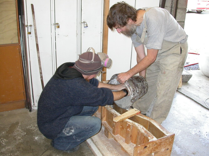 Rebecca Heap found this photo of Brendan Sole and I casting the furnace roof for the Glass School furnace. This was part of our furnace building elective. Although I now build furnaces to a different design, what I learnt on this course was invaluable when I bought my own studio in 2013.