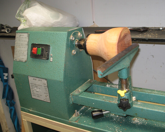 One of my glass blowing students lent me her lathe while she went overseas for a few months. I cut down a Tristaniopsis Laurina (alias water gum), an Australian tree that grows like a weed in Northland. It was us big enough to turn a woodblock for glass blowing. It was a bit of a struggle as I don't really know what I am doing but it turned out OK. The next one will be better because I have joined the Northland Woodturners group at the Quarry Arts Centre and am now able to get advice, watch demonstrations and get the right tools for the job.