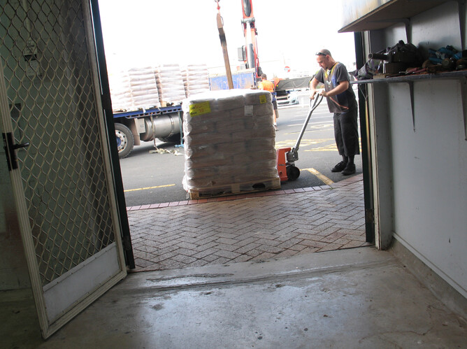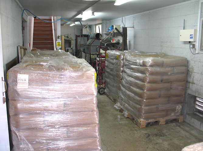6 ton of Glasma 705A glass batch arrived from Sweden last week. Minimal damage from fork lifts this time. The Hi-ab truck made unloading easy; dropped just outside the studio door ready for me and Brendon to roll into the studio. We did have to spend the previous day cleaning out the space to accommodate this amount of batch.