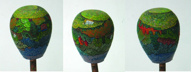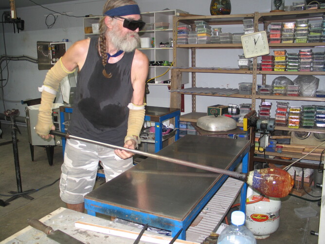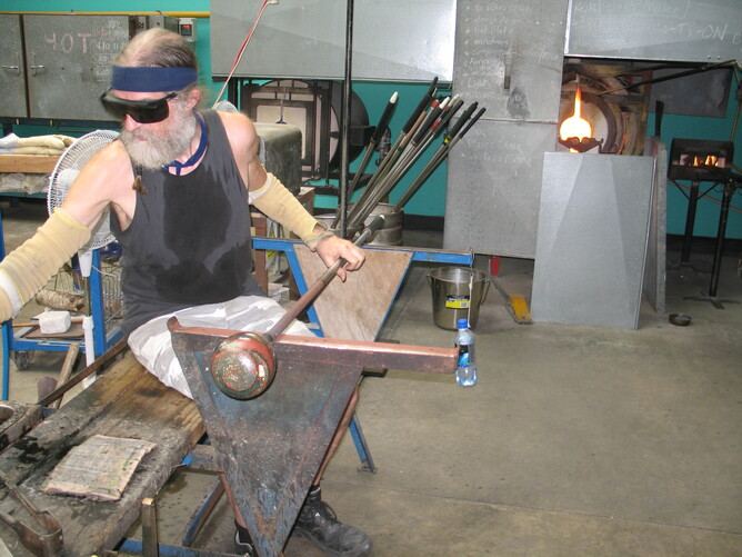 I have been working on this painted piece for a few weeks. Here are photos of it being painted and blown. I will update with a photo of the finished piece soon, blown woith the assistance of my beautiful assistant Diane :-) I had a peek in the annealer today and it looked ok. Looking forward to seeing it the right way up for the first time.