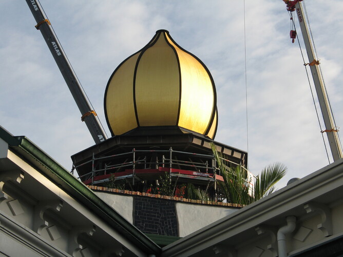 The Golden Dome was put in place on the Hundertwasser Museum this morning