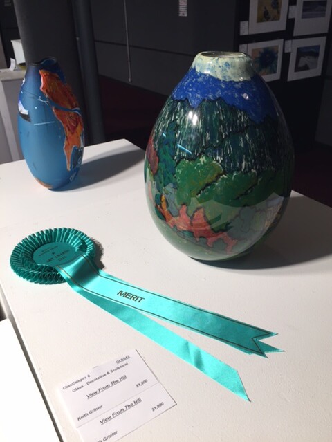 I received a merit award for my blown and painted piece (the view from our house) and a third prize for a shard vase at the Auckland Easter Show.