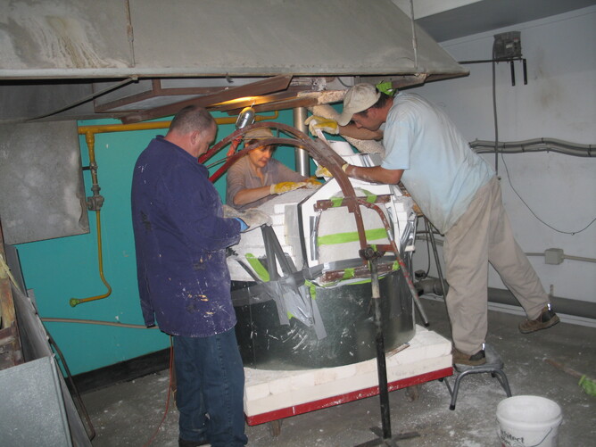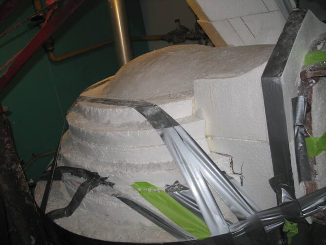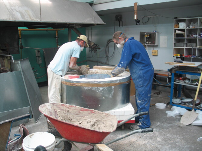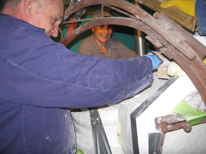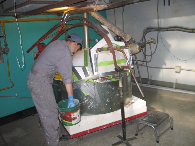 I have spent much of the last week working on the polystyrene forms for casting the dome in 1800 Shircast. Today Rebecca, Justin, Garry and Diane came and gave me a hand to get this competed. When we left this afternoon the casting was hot and hard.