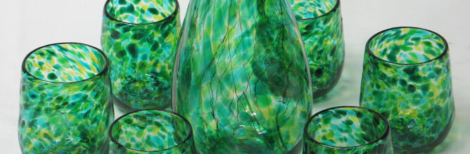 I thought I should show you my new tumblers made with K2 transparent frits and the carafes I made to go with them. As well as green, blue and red I have tried them in yellow but have not got the colours right yet. ...