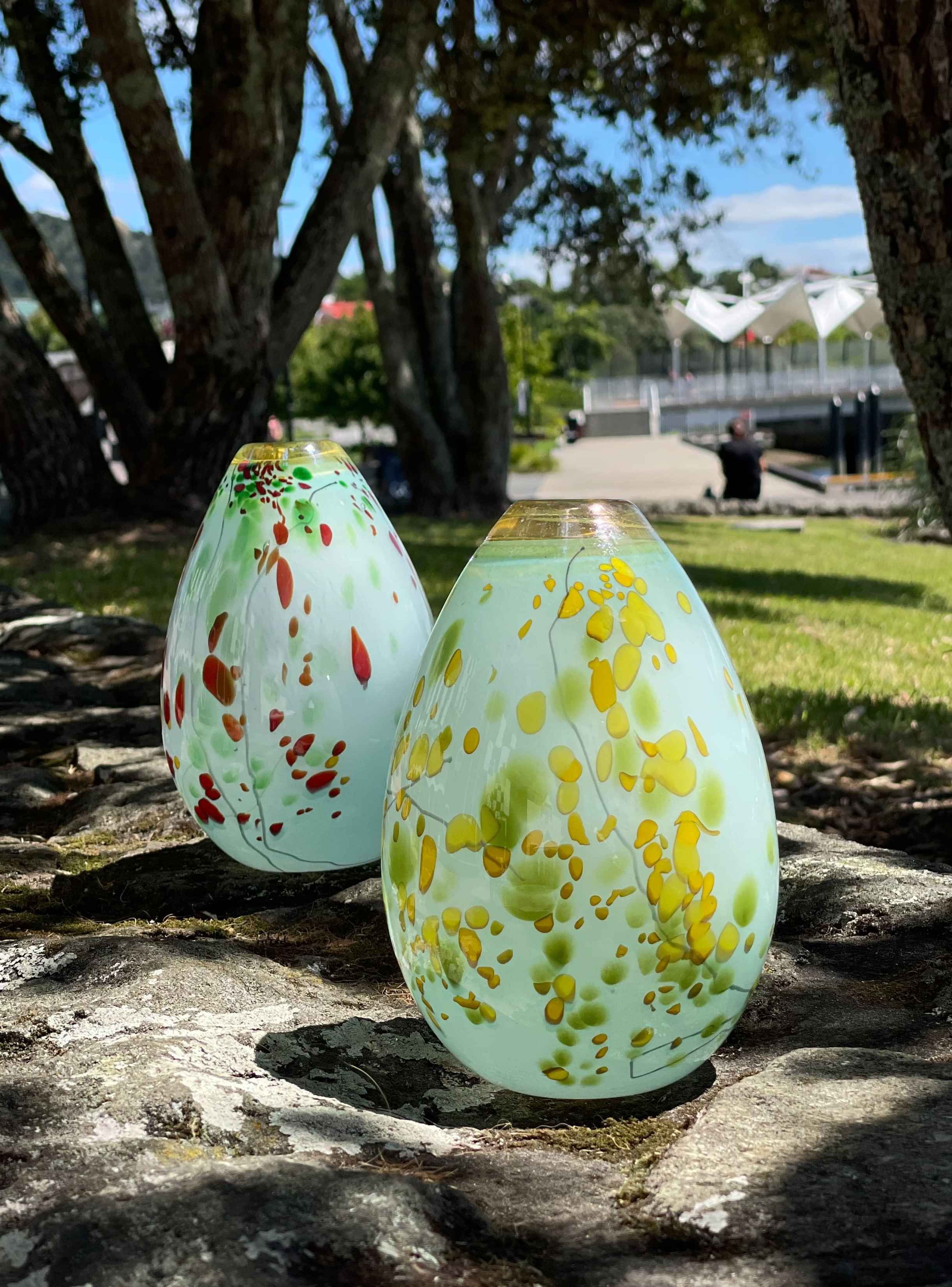 Brendon was introduced to hot glass in 2002 while pursuing a Bachelor of Fine Arts degree in Whanganui, where he earned a diploma in Glass, specialising in hot glass processes and off-hand glassblowing techniques. in 2020, he joined Grinter glass, transitioning from his previous studio in Whanganui to take on the role of "gaffer" or chief glassblower, for Keith Grinter.