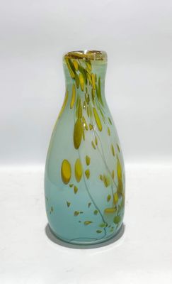 Stunning Kowhai flower inspired tapered vase with gold lustre lip. 170mm tall. Hand blown by Sergio Bloemen